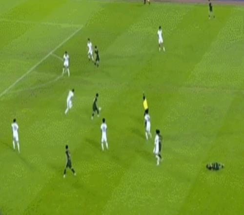 与沙特比赛中的这个进球也是一样的道理,脚下处理球很有自信,左脚停球后双足都能控球,最后是内切射门完成破门得分。