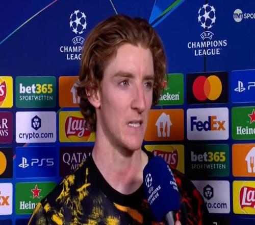 纽卡斯尔联在欧冠联赛阶段第6轮客场2-2与勒沃库森打平。赛后,安东尼-戈登接受了TNT体育的采访。比赛是如何被...